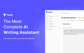 Typely Extension สำหรับ Chrome เป็นผู้ช่วยการเขียน AI ที่ครอบคลุมซึ่งออกแบบมาเพื่อเพิ่มประสิทธิภาพและคุณภาพการเขียน ส่วนเสริมฟรีนี้มีเครื่องมือที่ทรงพลังมากกว่า 30 ชิ้นที่ช่วยผู้ใช้ในการตรวจสอบไวยากรณ์ การตรวจจับเนื้อหา การเปลี่ยนแปลงข้อความ และอื่น ๆ ทั้งหมดเข้าถึงได้โดยตรงภายในเบราว์เซอร์ ไม่ว่าคุณจะกำลังร่างอีเมล เรียงความ หรือโพสต์ในโซเชียลมีเดีย Typely จะให้ข้อเสนอแนะแบบเรียลไทม์และการปรับปรุงโดยไม่ต้องเปลี่ยนแท็บหรือคัดลอกและวางข้อความ